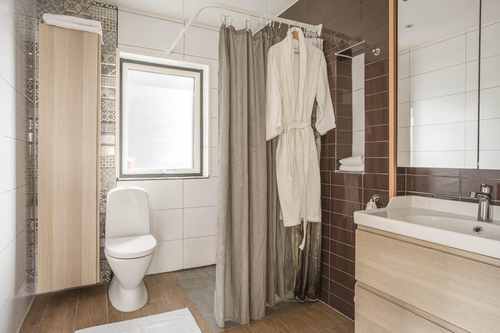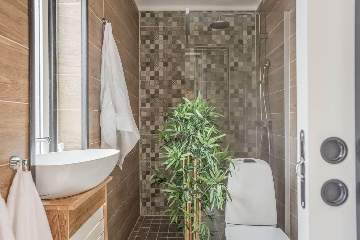 Här finns två fräscha badrum. Därtill en praktisk tvättstuga med tvättmaskin, torktumlare och förvaring som underlättar vardagen.