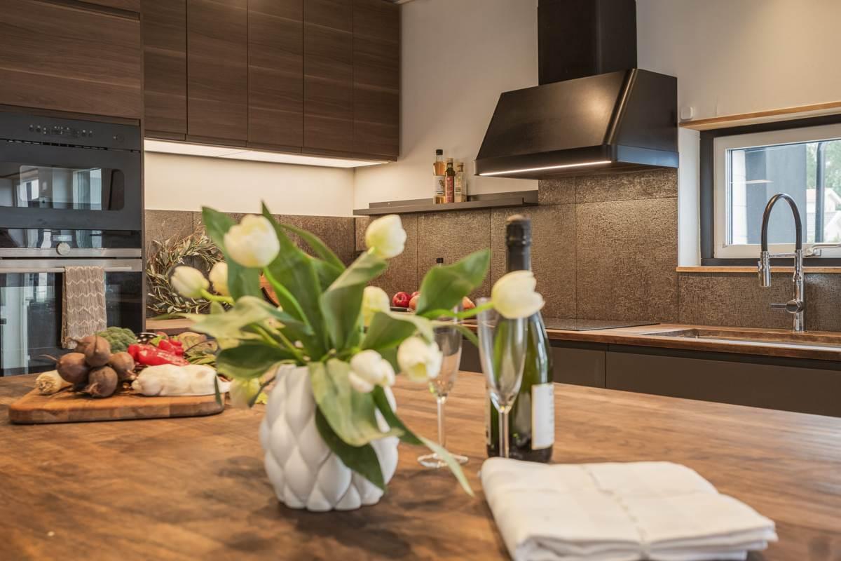 Husets hjärta är det rymliga allrummet i öppen planlösning mot köket. Här finns plats för både umgänge, middagar och lugna kvällar. Det stilrena köket med köksö, moderna vitvaror och gott om arbetsyta blir en naturlig samlingspunkt för hela familjen. Detaljer som träinslag och genomtänkt belysning skapar en varm och inbjudande atmosfär.